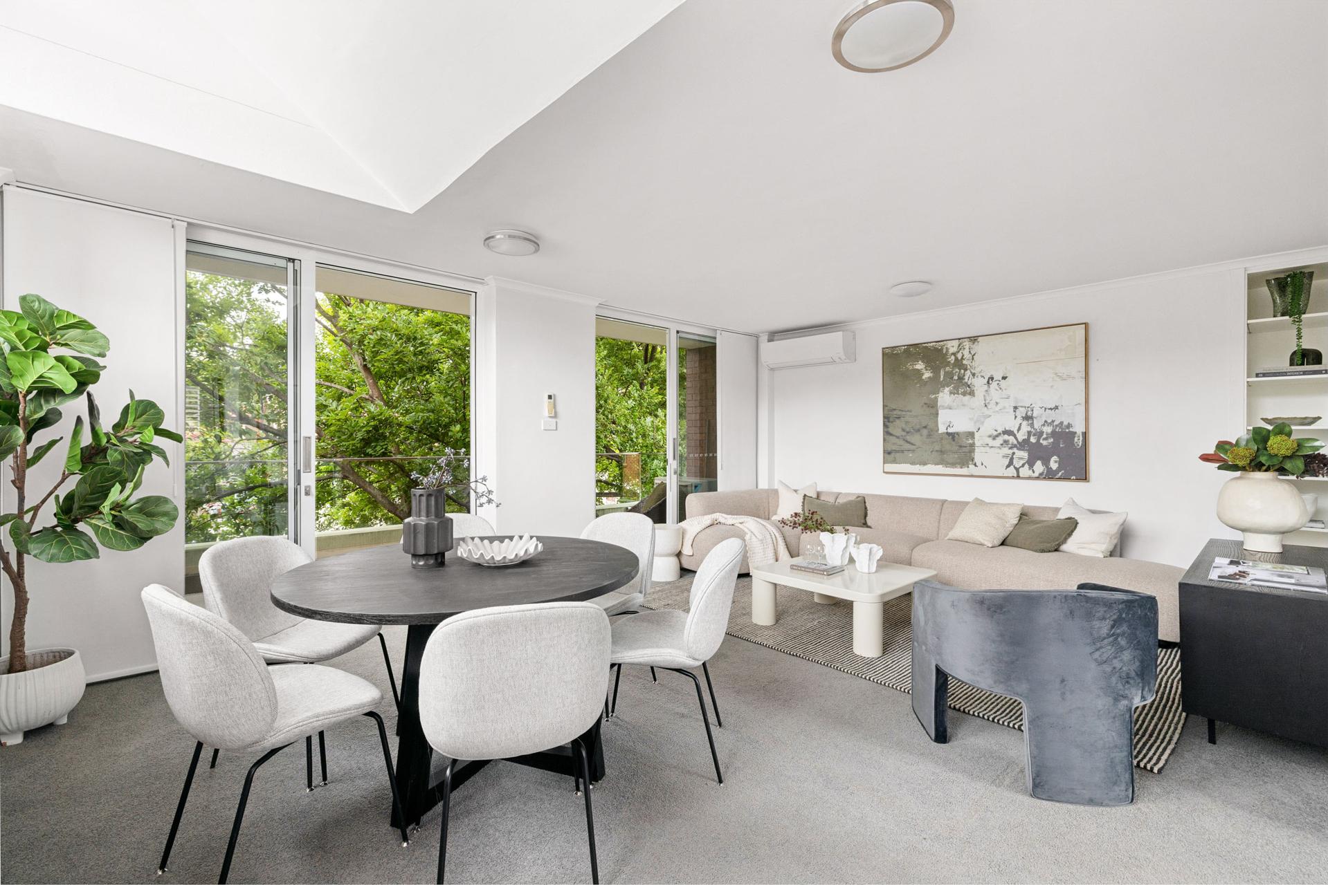 Delivering a refined house-like feel, this unique residence unfolds across a smart split-level design and is crowned by expansive outdoor terraces capturing sweeping views across the city skyline and Anzac Bridge. Beautifully renovated throughout, the interiors are bright, contemporary and thoughtfully planned, with seamless flow tailored to entertaining. Set in the heart of Wollstonecraft, it offers a lifestyle of comfort and convenience just moments from transport, the Crows Nest dining precinct and the North Sydney CBD.