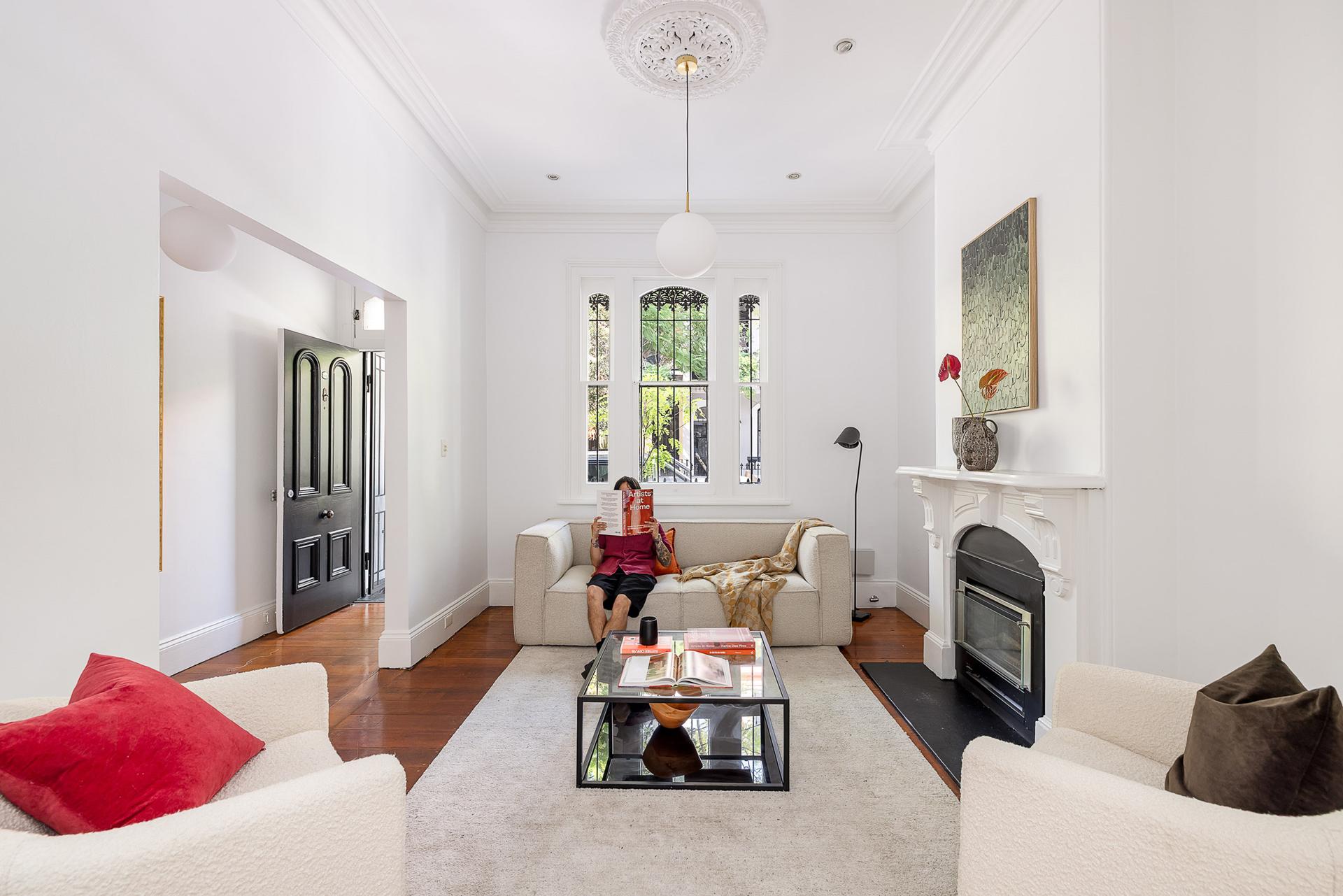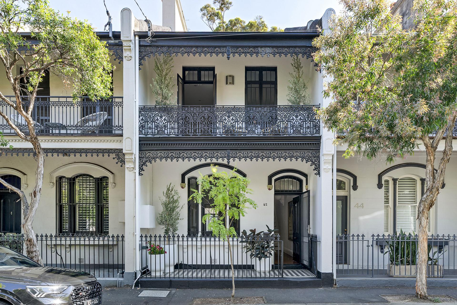 A grand Victorian terrace with a desirable north-facing courtyard, this home embraces its graceful Victorian bones and oversized proportions, layered with a chic black-and-white palette that carries through to its outdoor space and balconies. On a dual-fronted block, there is lock-up parking and access via Mort Lane. Situated in a premier village pocket, it is moments to Bourke Street Public School, Moore Park, light rail, Crown Street hub and a short stroll to the rejuvenated Surry Hills Shopping Village and dining precinct.