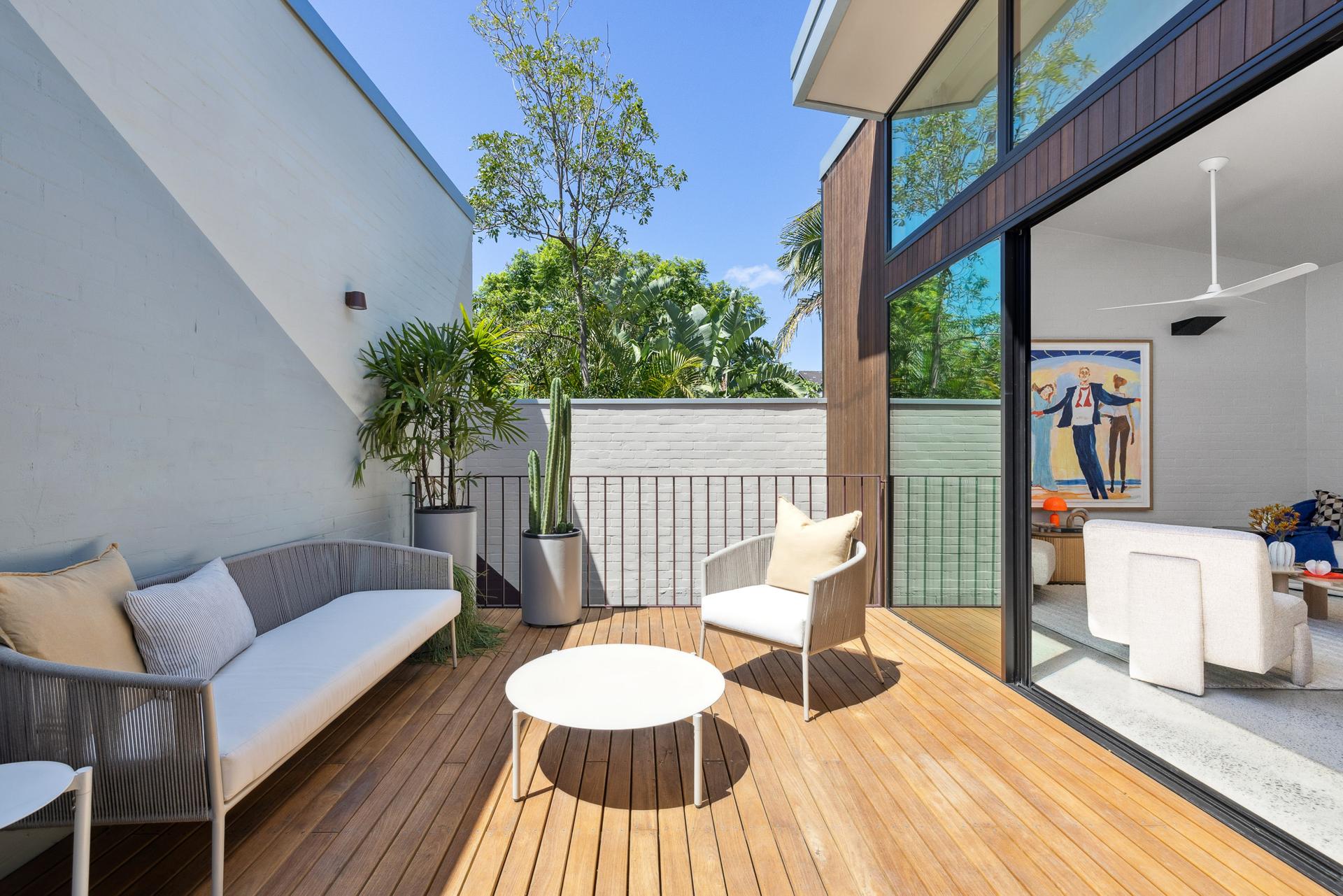 Fronting John Street, this recently redeveloped two-level warehouse home stands as one of the area’s most accomplished adaptive reuse projects. Now known as The Cake Factory in homage to its origins as a bakery more than 140 years ago, the building has lived many lives, remembered locally for biscuit and cake manufacturing before later evolving into an artist studio and creative workshop. Award-winning builders SQ Projects have reimagined the structure with exceptional restraint and intelligence, preserving its industrial soul while introducing a refined, high-spec residential transformation. Private street access, an internal garage and a generous open floorplan define the home, with interiors oriented around a completely secluded alfresco sundeck. Materiality is rich and tactile, combining Australian bluestone paving, hardwood decking, polished concrete and bespoke Blackbutt timber detailing with carefully selected stone and European finishes. Three well-separated bedrooms each enjoy integrated storage and their own dedicated bathroom, creating flexibility and privacy across both levels. Tucked quietly along the laneway yet moments from St Peters Station, King Street cafés and Sydney Park, it’s a home of rare depth, character and connectivity, placing Newtown, Erskineville, Alexandria, the CBD and airport all within easy reach.