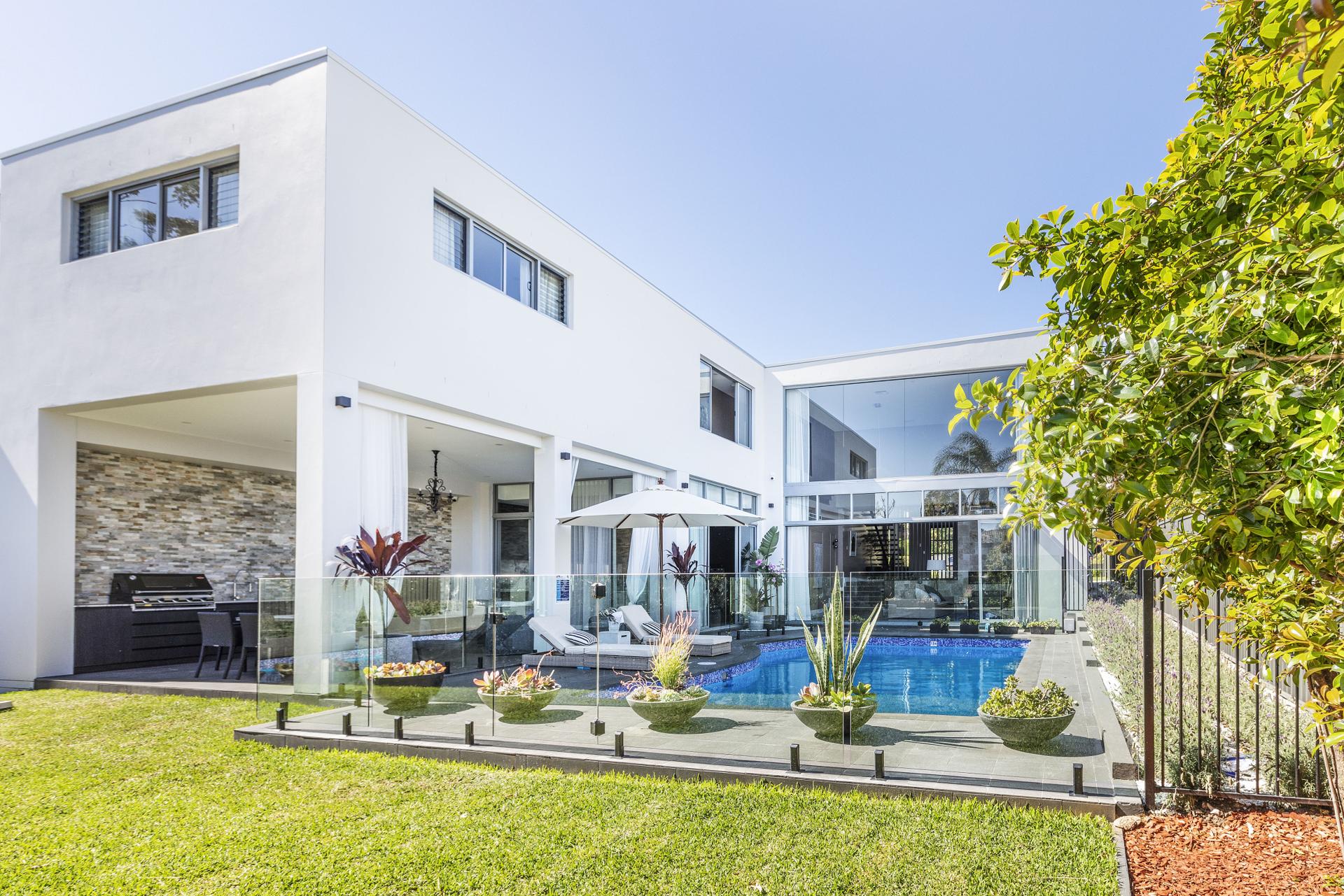The striking heart of this new build is its 6.5m-high, glass-enclosed living. It connects seamlessly with the alfresco entertaining & pool deck for an indoor-outdoor lifestyle of ultimate luxury.