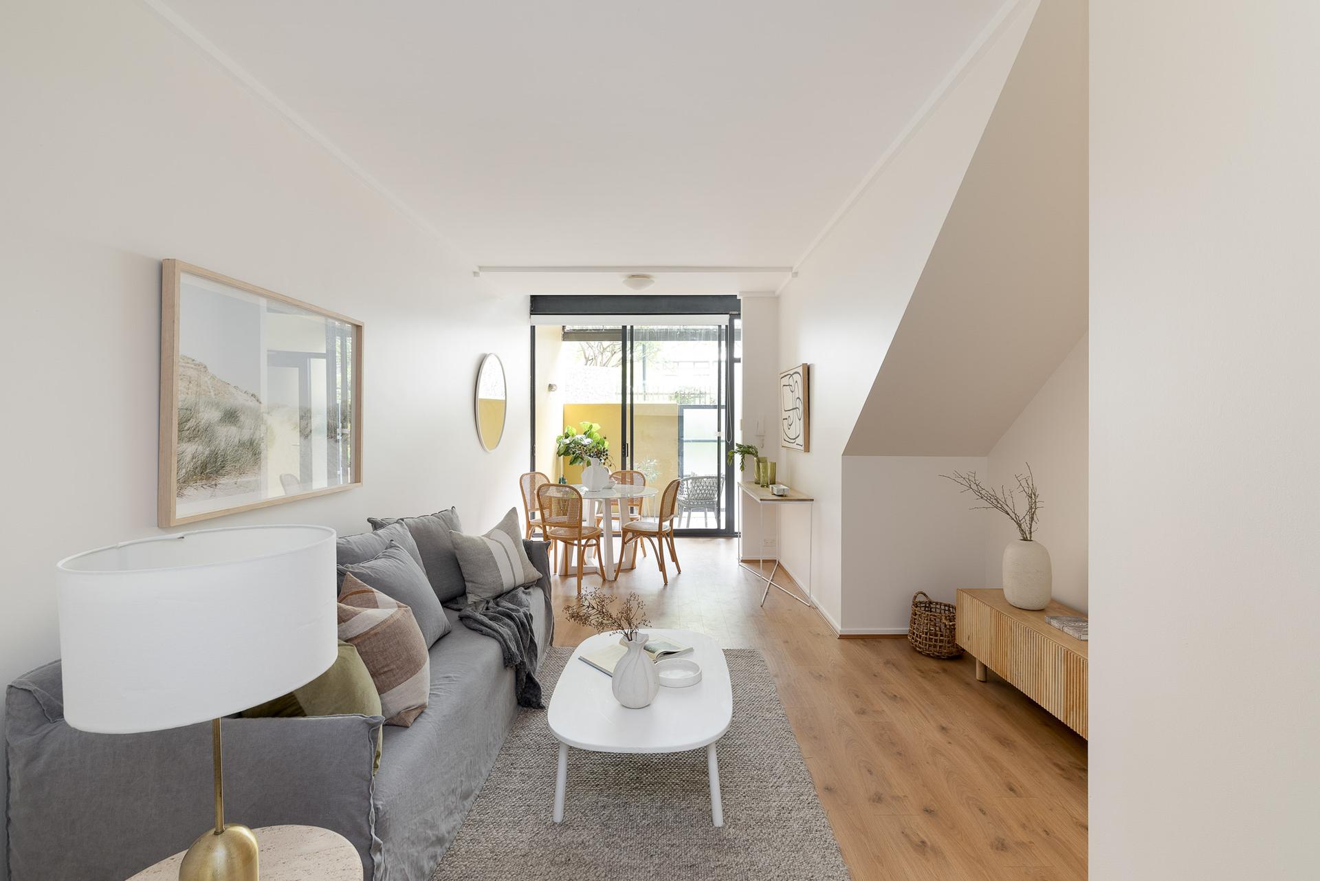 For a one-bedroom apartment, this starter overdelivers with private gated entry via your own forecourt and a peaceful internal position facing the central garden commons and pool terrace. The easy split-level floorplan comprises open living and a loft-style bedroom with walk-in robe and ensuite bath. In a well-connected pocket, it offers rapid and versatile access to the city, about 300m to Green Square Station and about 10 minutes’ walk to Waterloo Metro station, with Botany Road buses around the corner. Free Strata Report available at bw.com.au.