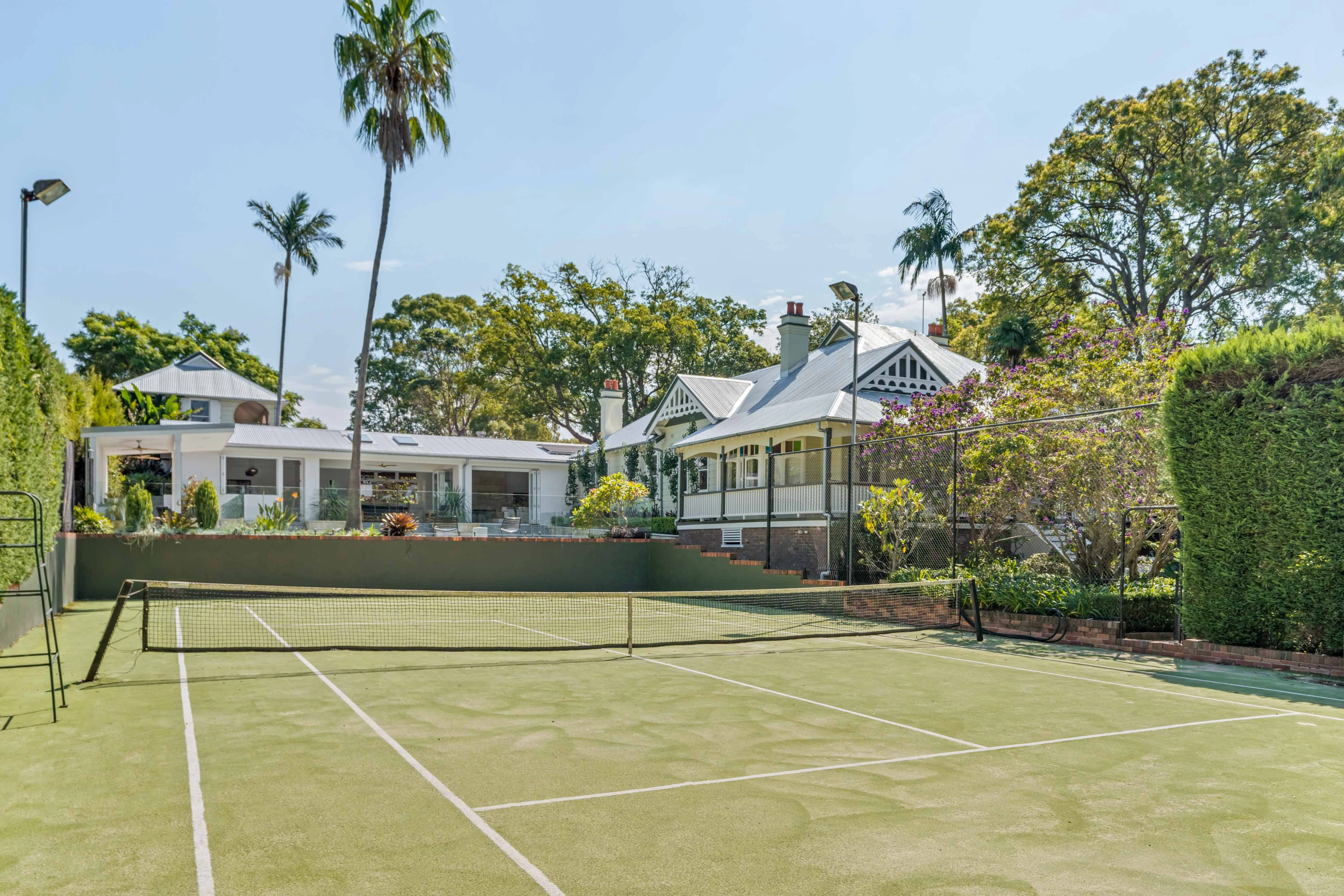 - Private & hedged tennis court with lights