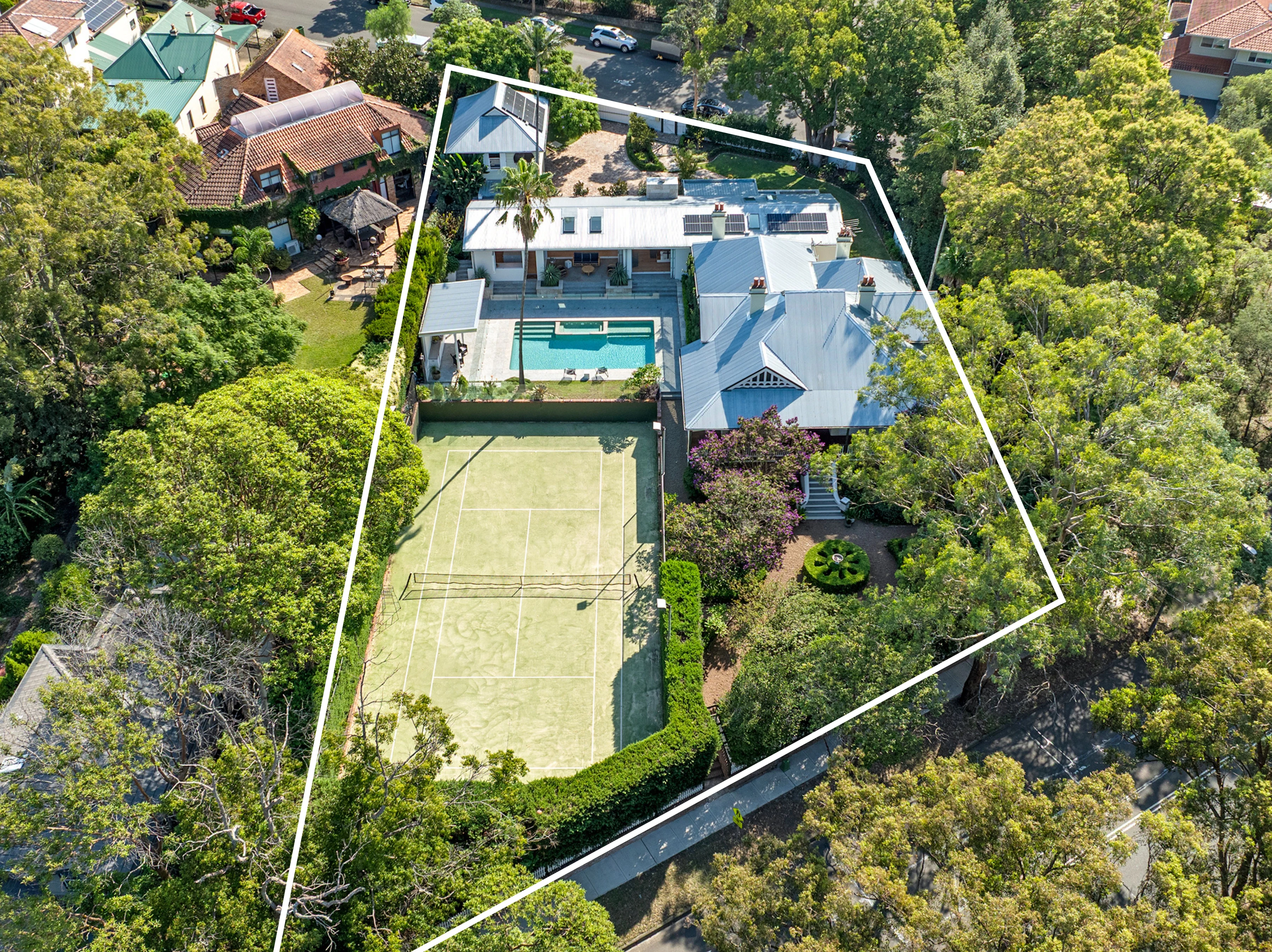 A home of rare beauty and scale, ‘Marika’ c1904 is a stately residence of classic grandeur, set on an impressive 2472sqm of land with private access from Augustine Street. Blending exquisite period craftsmanship with thoughtful contemporary updates, it evokes the romance of a country estate, complete with manicured gardens, a tennis court, pool, and a self-contained studio ideal for nanny or guest accommodation, featuring glimpses of the Harbour Bridge. The residence has been extended, restored & renovated with a modern pavilion style extension containing an open-plan kitchen, dining, living area, and a master suite, enhancing its timeless appeal. Moments from Joeys, Villa Maria, Boronia Park shops, oval, and city transport, it’s extraordinary to find such a unique family retreat in the heart of Hunters Hill. Truly a one-off opportunity.
