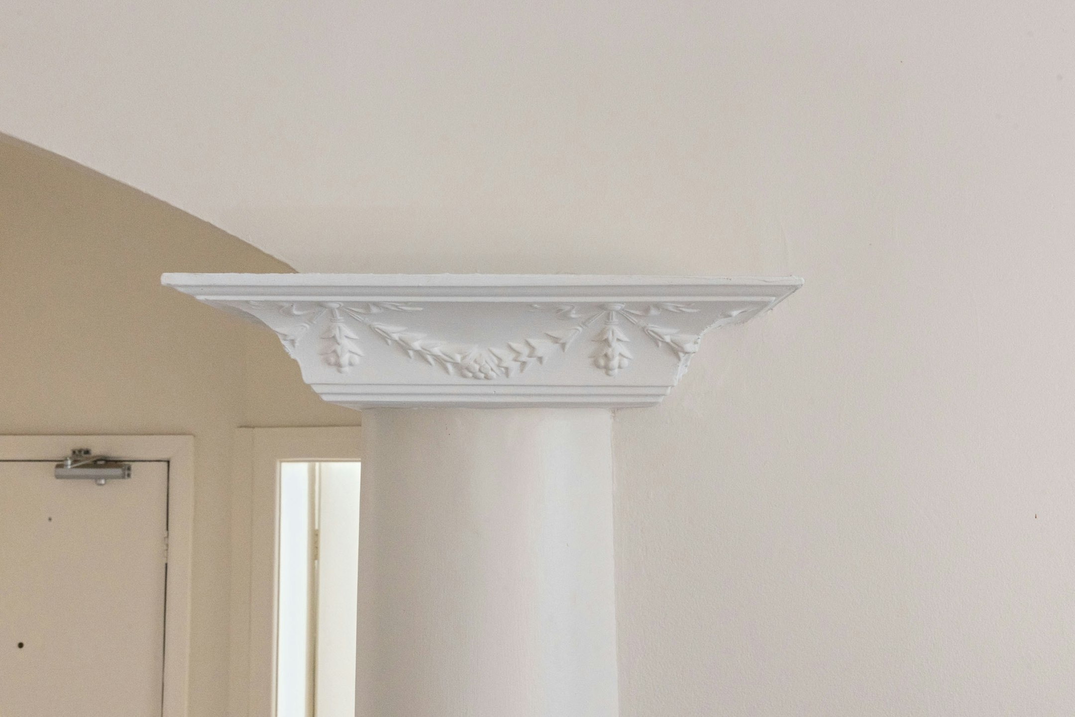 - Formal entry with archway and columns