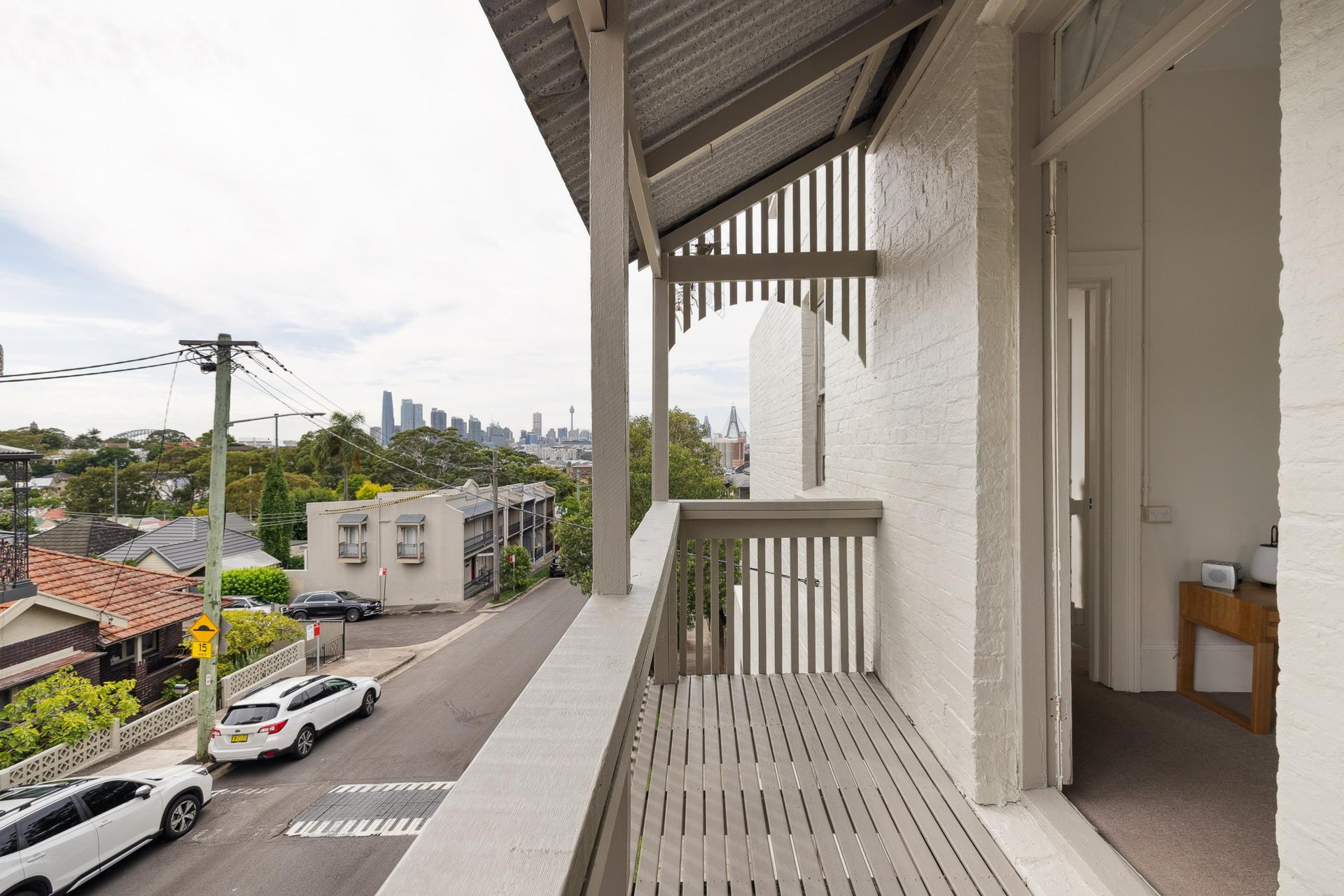 Occupying a commanding corner position with direct secondary street access, this character-filled terrace combines panoramic city views with rare scope to further enhance and capitalise. Elevated to capture sweeping vistas across the CBD skyline, Harbour Bridge and Anzac Bridge, the home is wrapped in oversized windows and French doors that open to a balcony embracing the outlook from multiple angles. Beyond its immediate charm and generous proportions, the property’s standout feature is its valuable rear land with direct road access from the side street. With the installation of a crossover (subject to approvals), there is clear potential to introduce off-street parking, construct a garage with studio above as previously approved (lapsed), or create a flexible workspace or guest retreat. Comfortable today and compelling for tomorrow, this is a rare opportunity to secure a corner terrace with views, land and genuine vehicle access with studio potential - moments from Rozelle Village and rapid CBD transport.