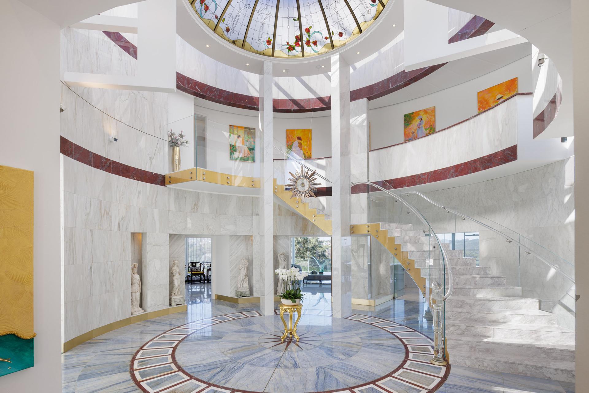Arguably North Shore’s most iconic and recognisable home, designed by Swiss-trained architect Gerry Rihs, built over a decade and recently renovated. On a coveted North Shore ridge line, the commanding contemporary residence occupies a 2553sqm waterfront reserve parcel, capturing sweeping northeasterly vistas across Middle Harbour and surrounding bushland. Spanning three expansive levels, all with lift access, it effortlessly accommodates large-scale family living and grand entertaining, while evoking an art gallery ambience. The floorplan features 7 bedrooms, 10 bathrooms, 6 car spaces, including a self-contained apartment and a glamorous master suite with spa bath and dressing room. Bathed in natural light through oversized glazing and a cathedral glass dome, the interiors balance architectural confidence with lavish finishes, including a marble-detailed foyer, multiple formal and informal living areas, a lower-level recreational retreat and renovated stone kitchen with wine storage. Outside, the waterfront setting unfolds across manicured gardens, a new covered infinity pool and the former in-ground pool reimagined as a pickleball court. With plant rooms, sauna, gym, air-conditioning, four-car garage, plus multiple parking options on the forecourt, it's a home of prestige, in the area’s finest street, moments from a selection of Chatswood retail and dining precincts.