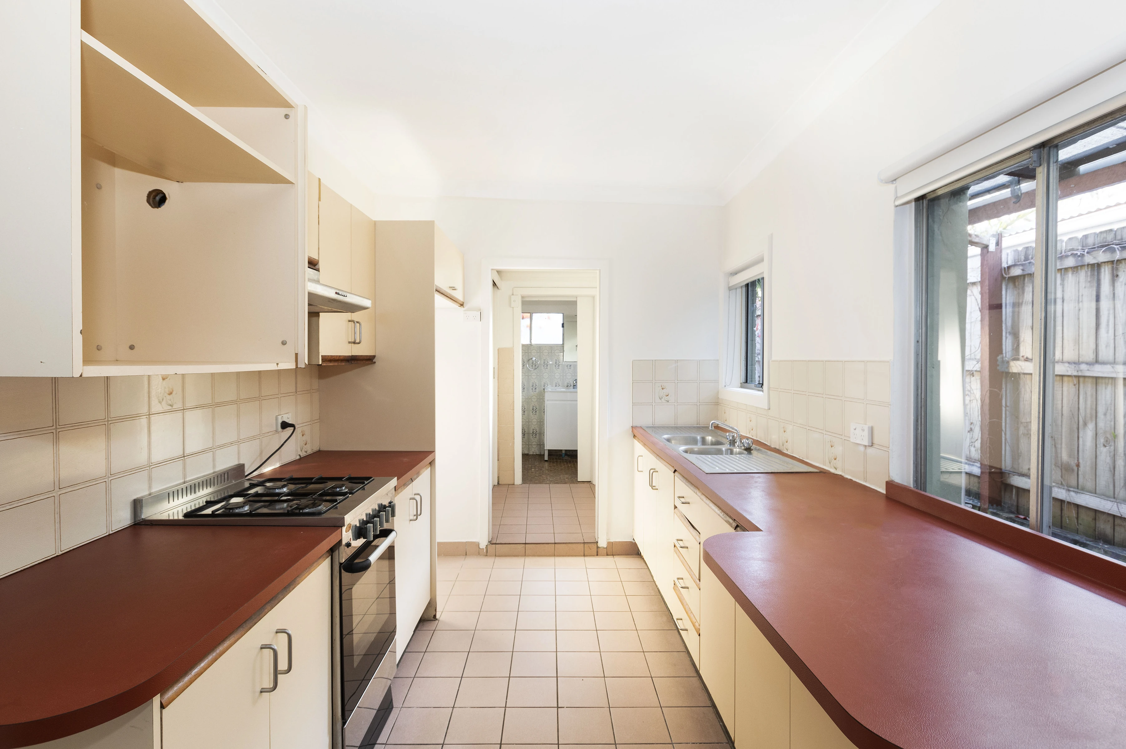 - Large galley kitchen, practical bathroom